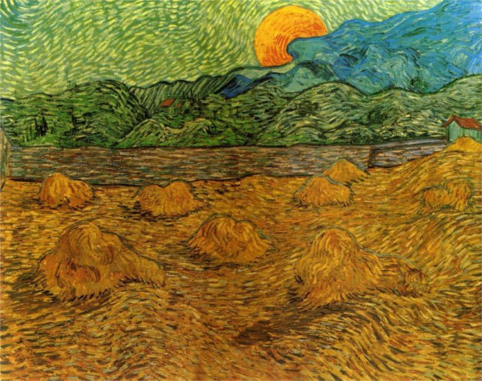 VINCENT VAN GOGH "Evening Landscape with Rising Moon " (1889) #vangogh #fineart #followart #painting #iloveart #art