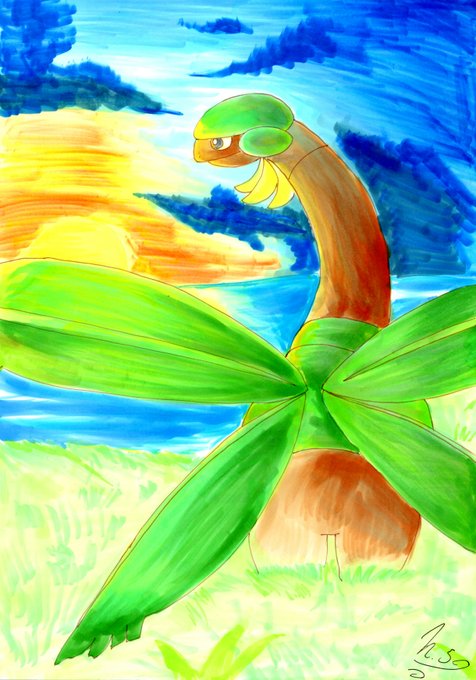 これに答えてかいてみた。 ミリペンで線画かいて、茶色系の筆ペンで着色してみた。 #ポケモン #アナログイラスト