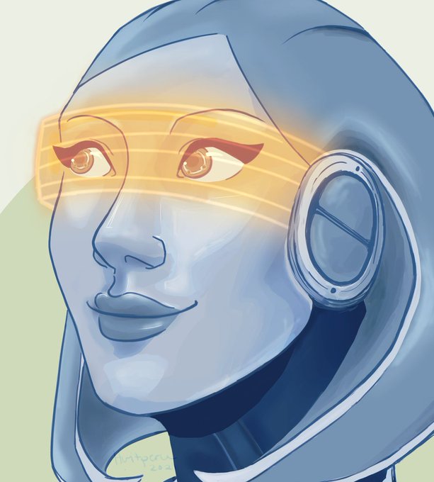 here's a small close up! 💖 I tried to render her skin like I did with my drawing of Commander Shepard. While rendering solid pink as skin was much harder than a "regular" colour, this was a lot of fun!!