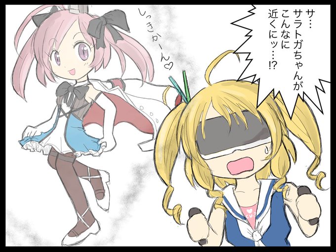 サラトガちゃんをねらうグリッドレイちゃんを描きました