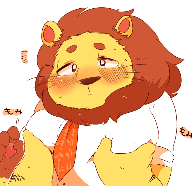 ライオン部長さん揉み揉み。