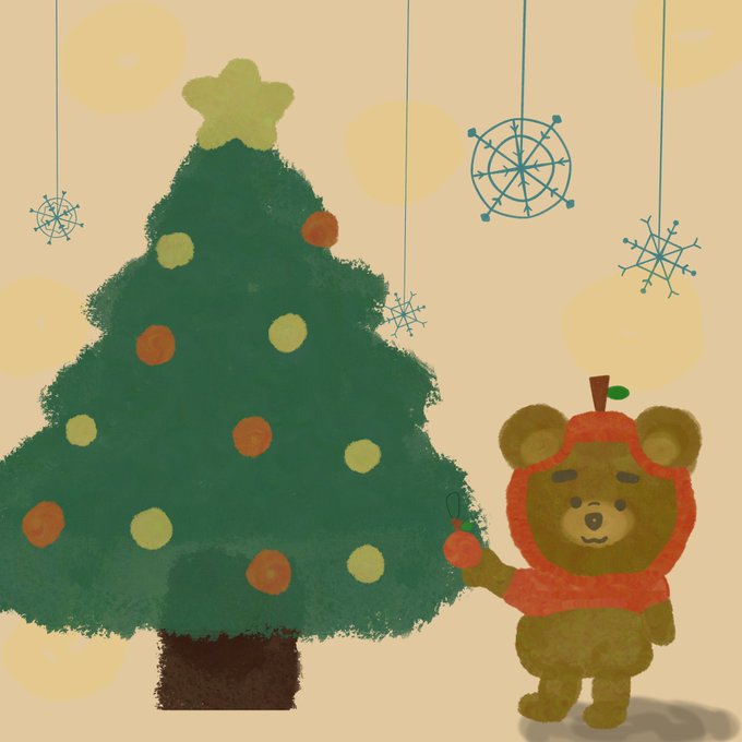 クリスマスツリーの飾り付け。 どーしてもりんごも付けたい。 #イラスト #クリスマス