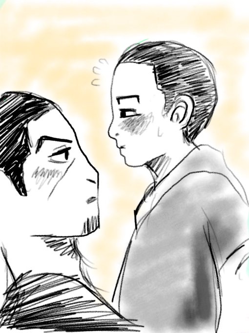 尾月! この尾はこのおじさんに抱き上げられてドキドキして困惑してて。 月さんは色の白さと柔らかさにビックリしてるようなそんな絵です。