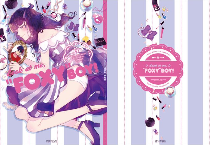 5月6日発行『Look at me, "FOXY" Boy!』サークル:泥舟(@tanino_osmt )のデザインをお手伝いさせて頂きました。ガーリーな小物を沢山描いて頂き、服に合わせたストライプをバックにかわいらしく仕上げました。