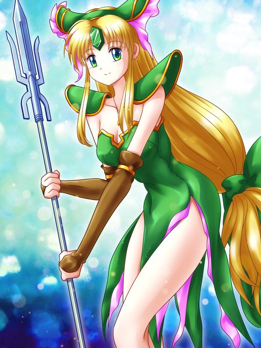夏も近くなってきたので海っぽい背景で聖剣伝説3のリースさんを描きました。