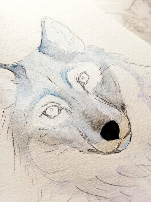 新年あけましておめでとうございます!今年もよろしくお願いします( ´◡‿ゝ◡`) 「子年」だからネズミ描くと思った?? 残念、狼でした(^._.^)ノ #水彩 #アナログ #狼 #2020年ももよろしくお願いします