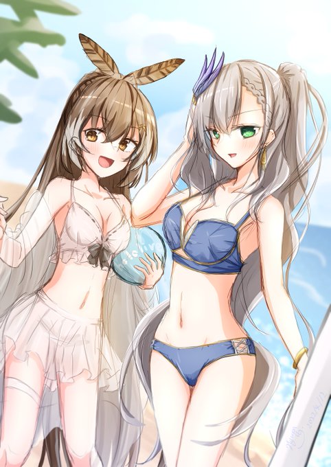 holotoriコラボ内、スバル先輩が断念したムメイとレイネの水着を取り急ぎご用意いたしました。 Welcome to 「hololive summer」. #パヴォリア・レイネ #七詩ムメイ #drawMEI #Reinessance #holotori #ホロ鳥