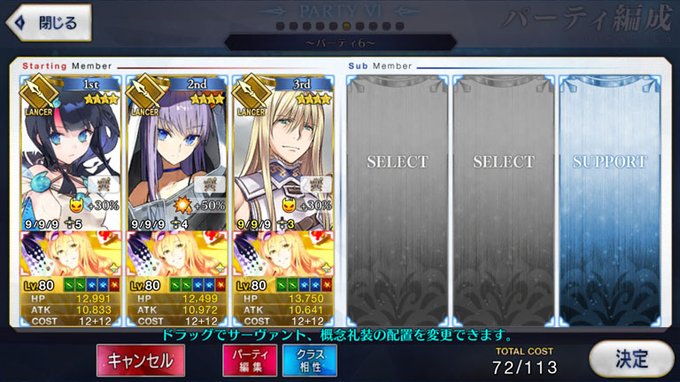 これでQ型殺編成が完成し、B型A型対騎編成も組めるようになって、この面子で倒せない騎出たら素直にフレ朕令呪使う。