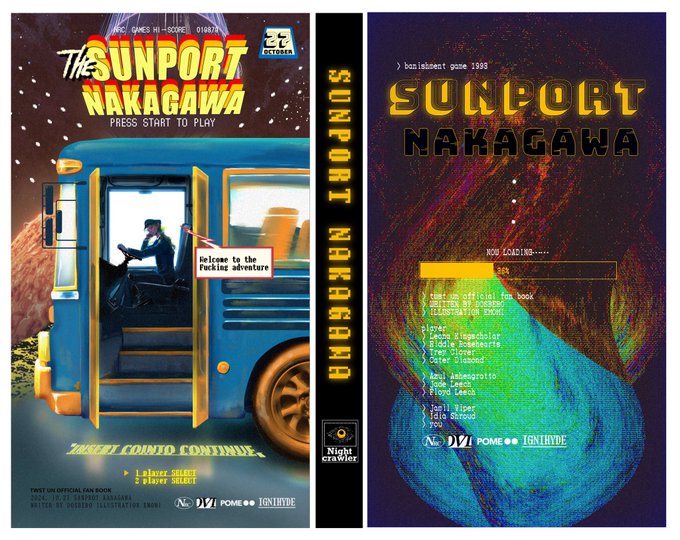 新刊『ブルーシンドローム』で表紙絵とあとがきを書いてドスベロちゃんからワンピースのツッコミをされたり、新刊『サンポートナカガワ』の表紙のバスを描きました🌹✨