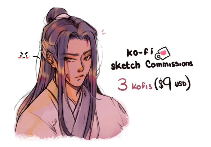hello<3 im opening 3 slots for head shots sketch commissions, 3 ko-fis ($9 usd) each 💗