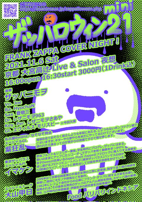 11/5㈯夜 ザッパロウィン w:大山甲日 京都 大宮高辻 夜想