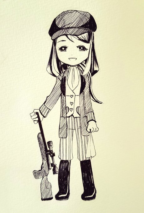 昨日描いた妄想きょうこくん(愛の狩人ver)にペンいれました。せめてハンチング上手く描きたいです。 #サクラ革命 #サクラ画廊