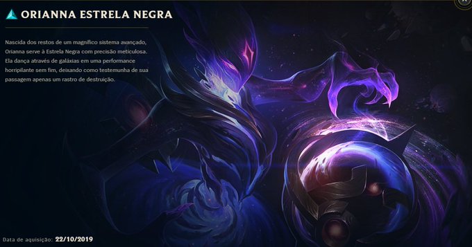 Orianna Estrela Negra! Essa eu também consegui de graça, e é outra skin que acho muito bonita.