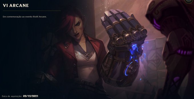 E agora que voltei a jogar o jogo! Eu tenho todas as skins Arcane que o jogo deu de graça por comemoração da fama de Arcane.