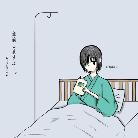 痛いから飲んどく #絵 #点滴 #少年