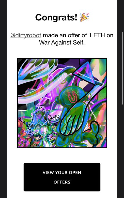 Wow. Thank you @1SLES for kicking off the bidding on ‘War Against Self’ on @SuperRare with 1 ETH!!! 😭 https://t.co/xaZhcvHtdc