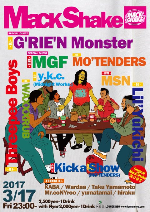 3/17 金曜日、久しぶりにMackShakeやります〜 当日限定でマザーファッ子とのコラボTシャツも販売します! Threepee Boys & MO'TENDERS Presents #MackShake @LOUNGENEO_tokyo