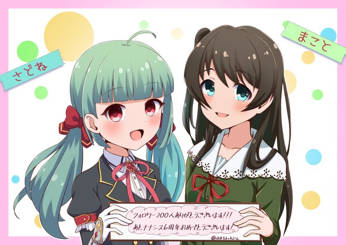 フォロワー200人ありがとうございます+遅くなりましたがナナシス6周年おめでとうございます!勝手にコラボイラストを描きましたごめんなさい。似てるようで全く似てない2人です。
