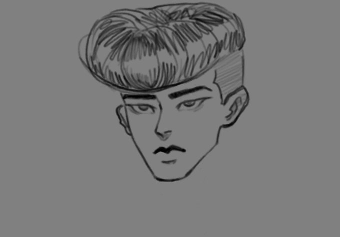 @ToroRabbit The first one is the very first time I drew him like full body, the second one was trying to make a character sheet for animation, and the third one is just a close up of his head/face and last one is an unfinished sketch/piece