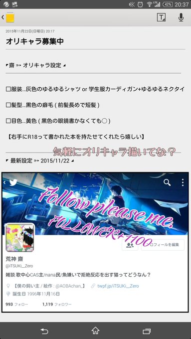 FOLLOWER+1100⏫ 僕のオリキャラ描いてくれる人募集中やでー 気軽に描いて貰ったら、嬉しいねん。 あと、絡んでなー?もしかしたら、絡みに行くと思うけどなー? #祝ってくれる人RT.ふぁぼ #オリキャラ描いてください