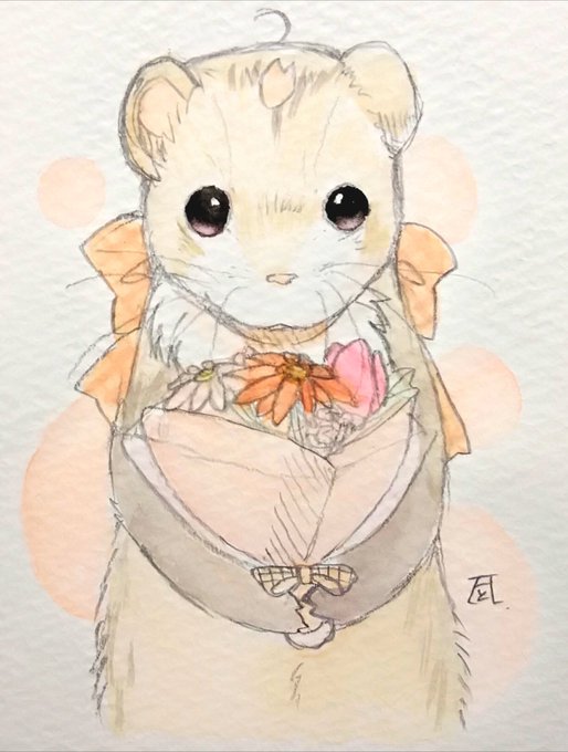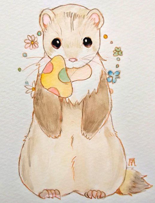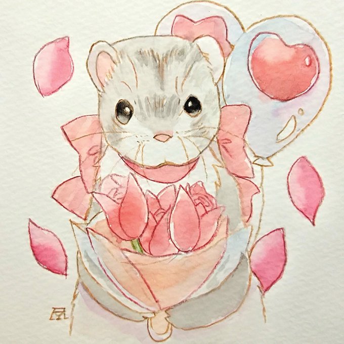 出来た! 今回のテーマは赤色。 #イラスト #絵描きの輪 #透明水彩 #フェレット