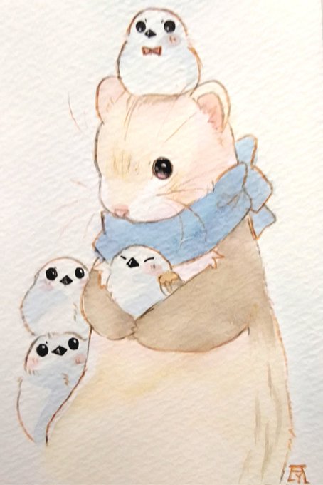 透明水彩で愛フェレ描いてます🎨🖌 #絵柄が好みって人にフォローされたい #透明水彩