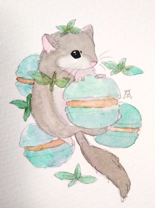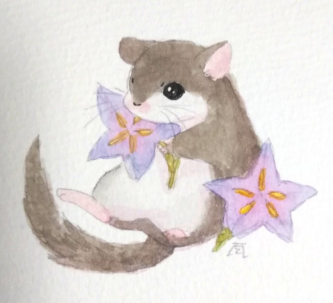 @tos フェレットとやまねっこを透明水彩で描いてます #秋の創作クラスタフォロー祭り #私の絵柄が好みって人にフォローされたい #透明水彩