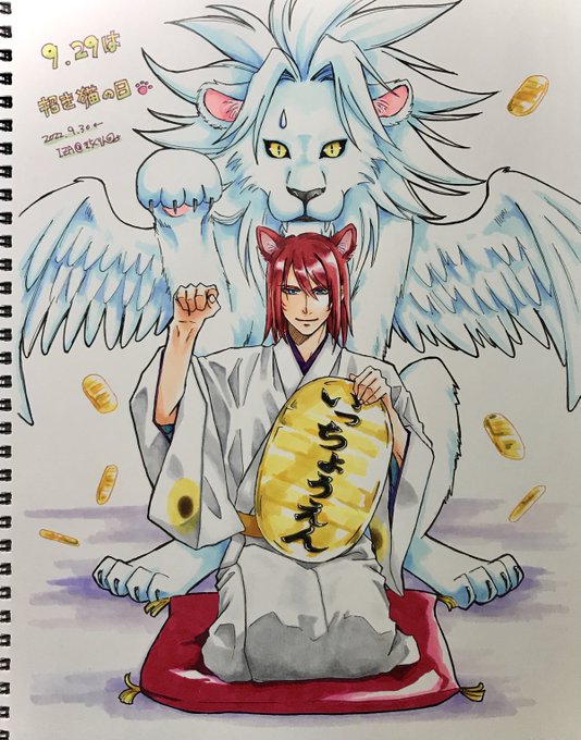 塗りに予定外に時間かかってしまった。 いつものうちのこ遅刻絵。 塗りは寄せ集めのアルコールマーカー。 #イラスト #招き猫の日 #遅刻