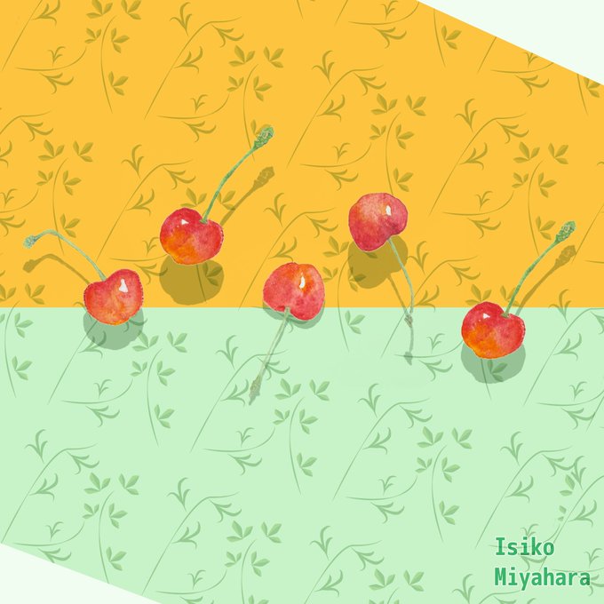サクランボだけ水彩と色鉛筆使用 他フォトショとイラレで加工しました。 #水彩絵を流して水彩民を増やそう #水彩 #水彩画 #色鉛筆