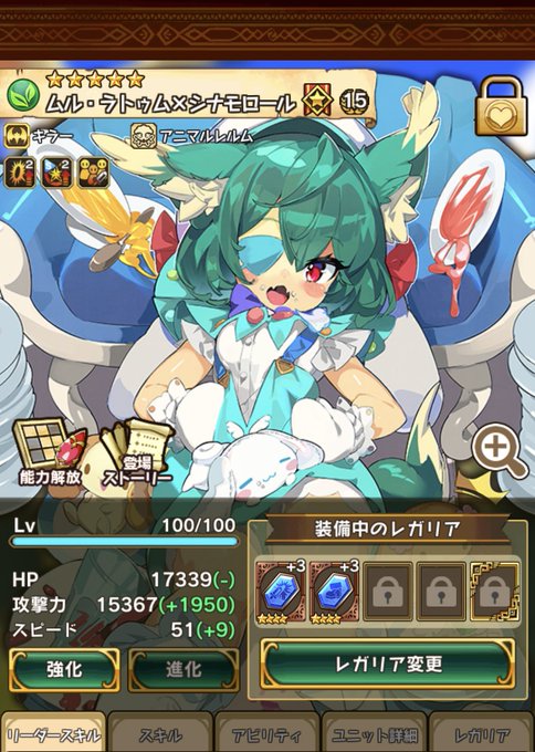 最初はゲームダウンロードの詳細に写っていたミニキャラのムルを見て、ゲームやるとしたらこの子が欲しい!と思って始めたのがきっかけでしたね(˶ ̇ ̵ ̇˶ )その後もたくさんのムルがユニット化してくれてガチャ頑張りました…!ミニキャラだけじゃなく本当に絵が好みすぎる。