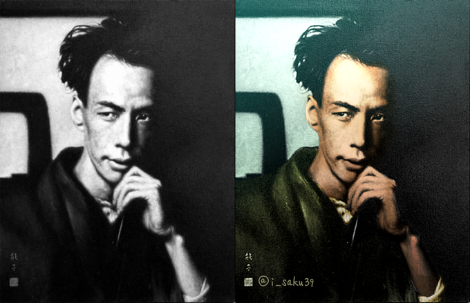 芥川龍之介の命日だったらしいので カラー写真で生き返らせてみた。 相変わらずイケメンやねー♪(-ω-) #7月24日は芥川龍之介の命日 #満35歳没 #モノクロ写真をカラーで生き返らせる