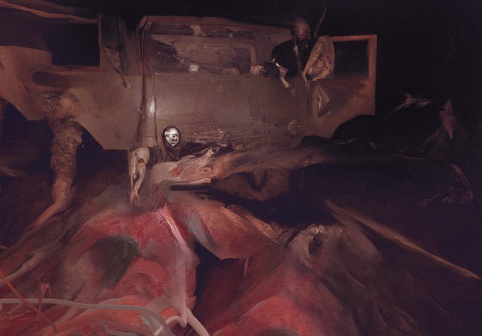 Case an point. The painting started out with a creepy figure on the right as its main subject, but once it was removed it lost the illustrative aspect of it and became a sole conversation between the viewer and the figures in the back. https://t.co/jM4uh2m1qO