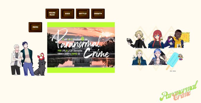 @TRPG_TL CoC「Paranormal Crime」(作:さとう鍋様) KPあれまさん PLおじょうさん、なこちさん、わし、肉祭さん、アキラさん、もなかさん(HO順) パラクラついに始まったぞ~~~!!🥳KPからもTLでも応援されてる お仕事楽しい!1話無事全員生還、2話目もめちゃくちゃ楽しみです!がんばるぞ💪
