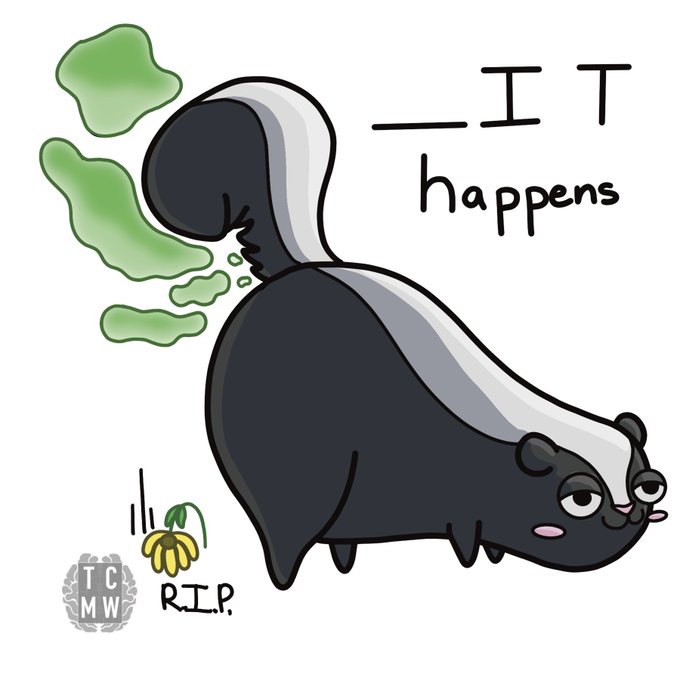 Day 347, RIP flower. The prompt was “smell.” #smell #smelly #stink #stinky #skunk #flower #dead #deadflower #fart #gas #musk #green #ithappens #procreate #sketchadayapp