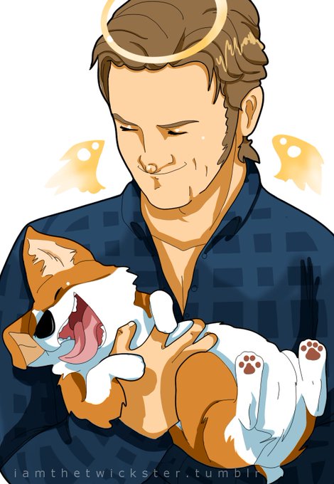 Gabriel with a Corgi (his name's Skip and he loves belly rubs) @dicksp8jr