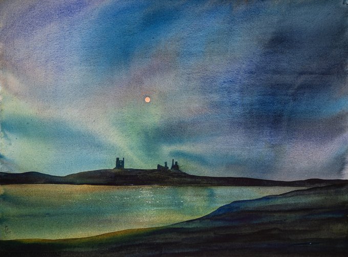 Iconic Dunstanburgh on the Northumberland coast seen from Low Newton Bay: a watercolour from Northern Soul at Ryedale Folk Museum. The exhibition runs to 11th July.