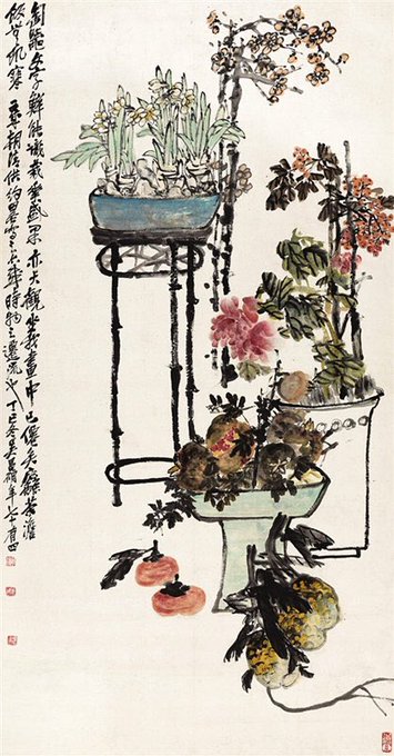 书法好会带来书卷气;有书法功力的人在国画上有后劲;吴昌硕的画虽有长跋,仍沉不下去;尽精微、致广大,画中有道即是好;画面有构图、有造型、有笔墨就构成了“尽精微、致广大”的道的特征……