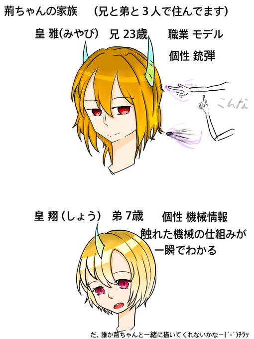 荊ちゃんの家族構成。親は海外出張で居ません。|´-`)チラッ 誰か書いてくれないかなー...(小声)