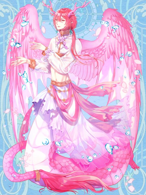こちらは翼やその他諸々が目立つように水着はシンプル目にちょっとだけ民俗調にさせていただきました☺️リクエスト誠にありがとうございました✨