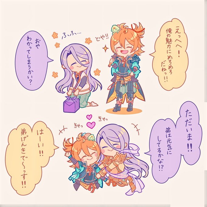 きらきらお祭り雅!愛染くんと歌仙の軽装ポーズおそろいなのかわいい #62配布の前にあなたの本丸初期3口を御伴機能で教えてください