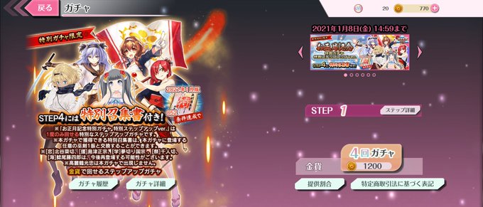 ガチャやるとして、天井いって誰を引くか、、鯰ちゃん、千ちゃん、島津ちゃん、制服夢ちゃん、お迎えしていない北谷ちゃんか、、、一人しかお迎え出来ない辛さ。。高麗鶴ちゃんも晴着もあるし、、ムムム。。