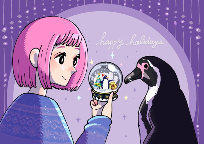 ✨キラキラ銀世界✨ #ペンギン #イラスト