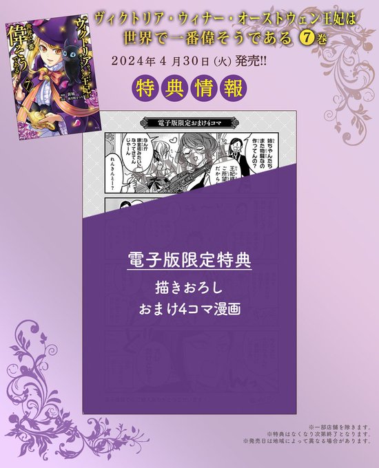 『ヴィクトリア・ウィナー・オーストウェン王妃は世界で一番偉そうである』第7巻が本日発売です🥳🎉 単行本限定描き下ろし漫画も10ページあり!よろしくお願いいたします✨👸🌹