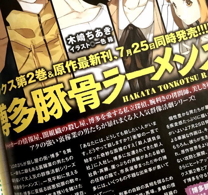 電撃文庫MAGAZINEVol.56にて、原作イラストを担当させていただいている『博多豚骨ラーメンズ』のコミックス2巻・原作7巻の告知が掲載されております。 書影も出てますので、よろしければチェックしてみてくださいませ!