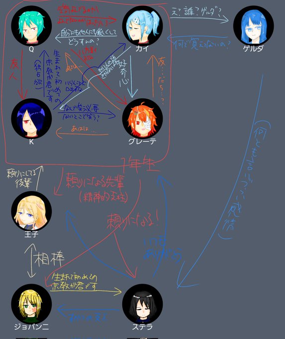 これは防衛部の相関図(テンション高いときにノリでつくった)