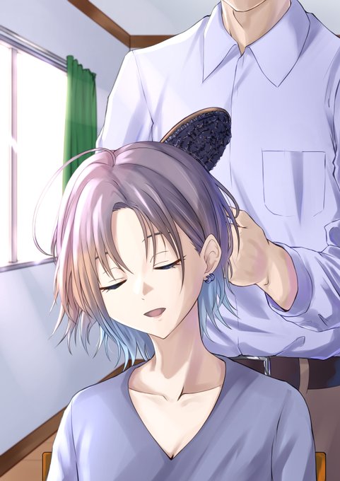 「なあ、やっぱ円香にやってもらった方が……」 「えー、出来てんじゃん」 お題箱より、Pたんにブラッシングしてもらってる浅倉透を描きました。 ところで、この部屋どこの部屋?(え")