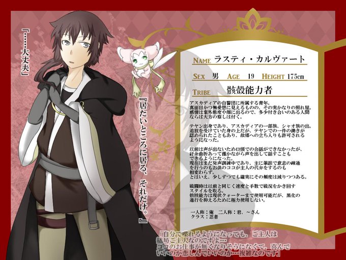 なお、他は止水→ナギ(とぱれ)宵→ジン(幽影、幽影2)境界→ヴェルカ(ていぴく3)となっておりました。構っていただきありがとうございました…!