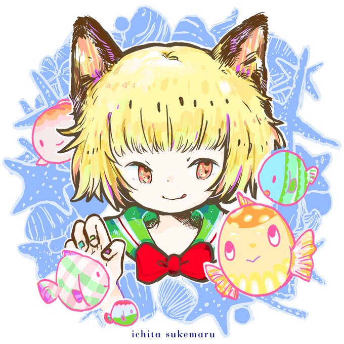 グッズ用の絵ができた…真夏のデザフェスっぽくマリン!先日描いた猫が元案です。