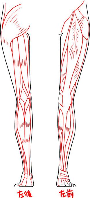 脚を描く時に重要なのは、ヒザ部分と足首部分です。筋肉のつき方を覚えましょう🌸