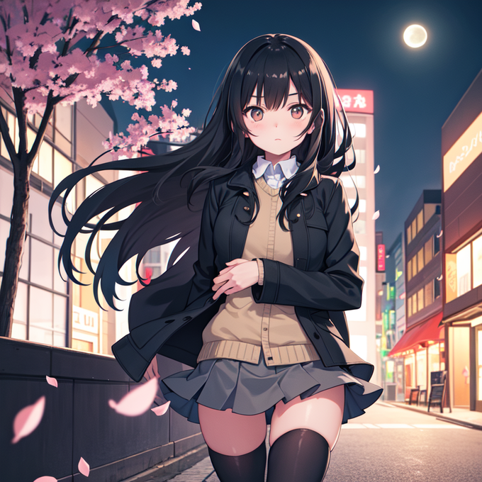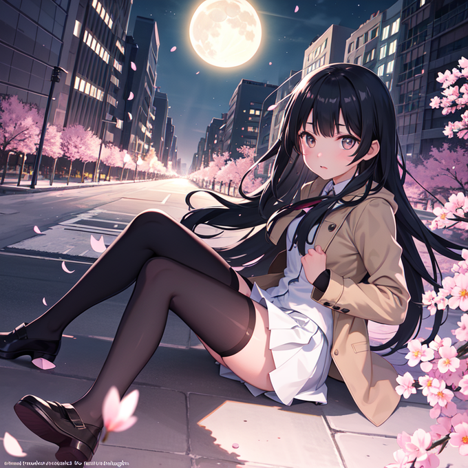 AIに桜と女の子のイラストを描いてもらった